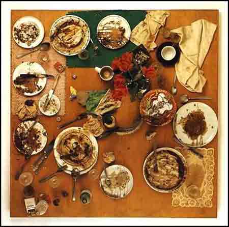 • 27 Daniel Spoerri, Hahns Abendmahl, Reste nach einem Abendessen konserviert. Lediglich fixierte Wirklichkeit. Zurückgelassene, verbrauchte, verstoßene Dinge, die einmal das Leben begleiteten.