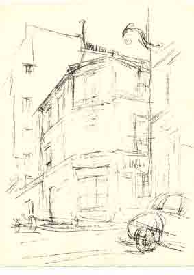 • 09 Giacomettis Zeichnung Coin de table weist ebenfalls deutliche Spuren der Entstehung auf. Sartre: Das Werk entsteht durch einen Strich und dann durch einen zweiten und dann durch einen dritten! Das Ringen um die Form, das mit der Entstehung verbunden ist. Ein suchender, immer wieder neu ansetzender Strich. Ein Strich wird präziser und ersetzt einen vagen Vorgänger. Es wird zwar radiert; dennoch bleibt das Ursprüngliche sichtbar.