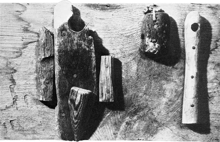 • 24 Hans Arp Holzstücke sind montiert als Erinnerung an einen Schiffbrüchigen. Die verwitterten Stücke tragen die Spuren der Zeit.