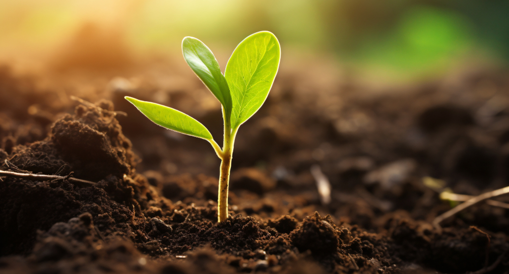 Symbolfoto für Hoffnung: Grüner Keimling wächst aus der Erde.