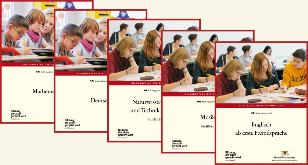 Bild: Titelseiten mehrerer Bildungspläne für allgemein bildende Schulen Baden-Württemberg