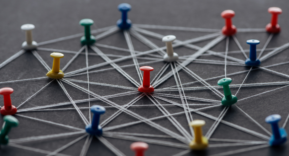 Symbolbild Schulpsychologische Dienste: Sechs Hände halten vier große Puzzle-Teile. Die Puzzle-Teile tragen unterschiedliche Farben, nämlich rot, blau, gelb und grün. Sie passen einwandfrei ineinander.